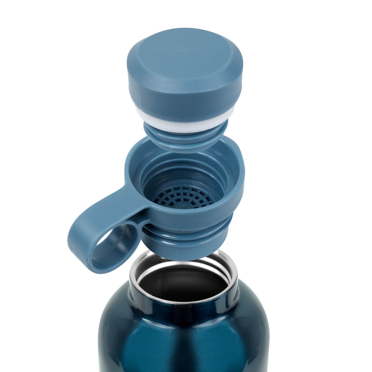 Termo doble pared, cerrado al vacio. Pared interna y externa de acero inoxidable. Incluye tapa de plastico con doble sistema de rosca, ademas de incorporar un filtro para preparar te o infusiones. Su asa integrada facilitara que los lleves a todos lados,