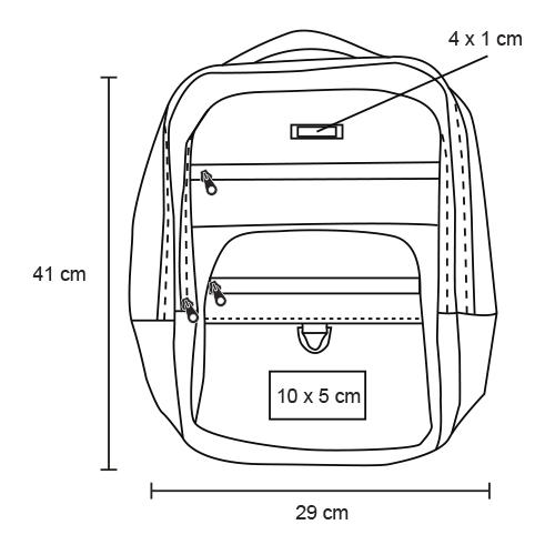 Mochila de 3 compartimentos; 1 compartimento principal con porta laptop; 2 bolsas frontales con cierre; tirantes acolchados y asa superior.