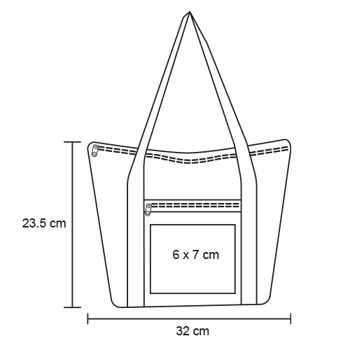 Bolsa de poliéster con 1 compartimento principal con cierre; uno frontal y asas.