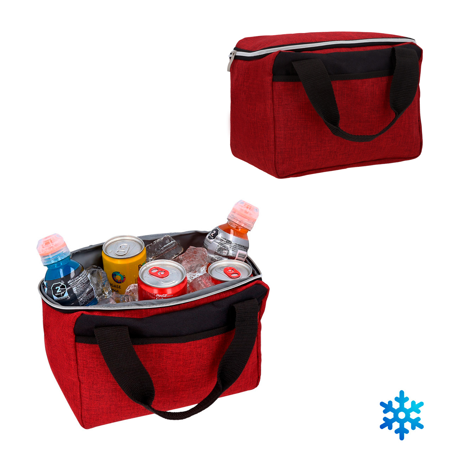 Hielera con interior impermeable sellado; asas y un compartimento externo al frente.