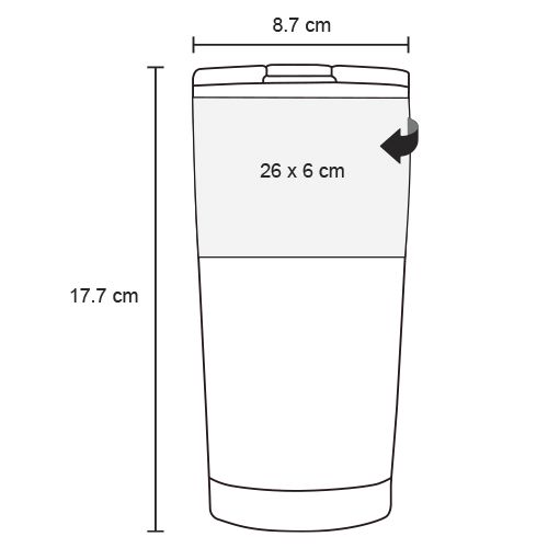Termo sublimable con doble pared de acero inoxidable insulado al vacío. Incluye tapa de cierre a presión transparente.