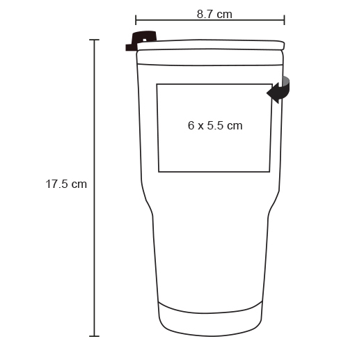 Termo con doble pared de acero inoxidable insulado al vacío con acabado rugoso. Incluye tapa transparente de cierre a presión.