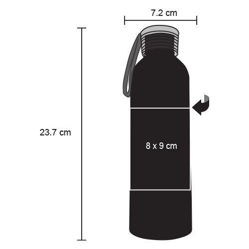 Cilindro de acero inoxidable; con tapa de plástico traslúcida enroscable y correa de silicón.