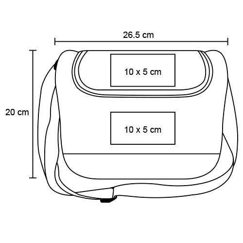 Lonchera con compartimento principal plástificado; asa y correa ajustable.