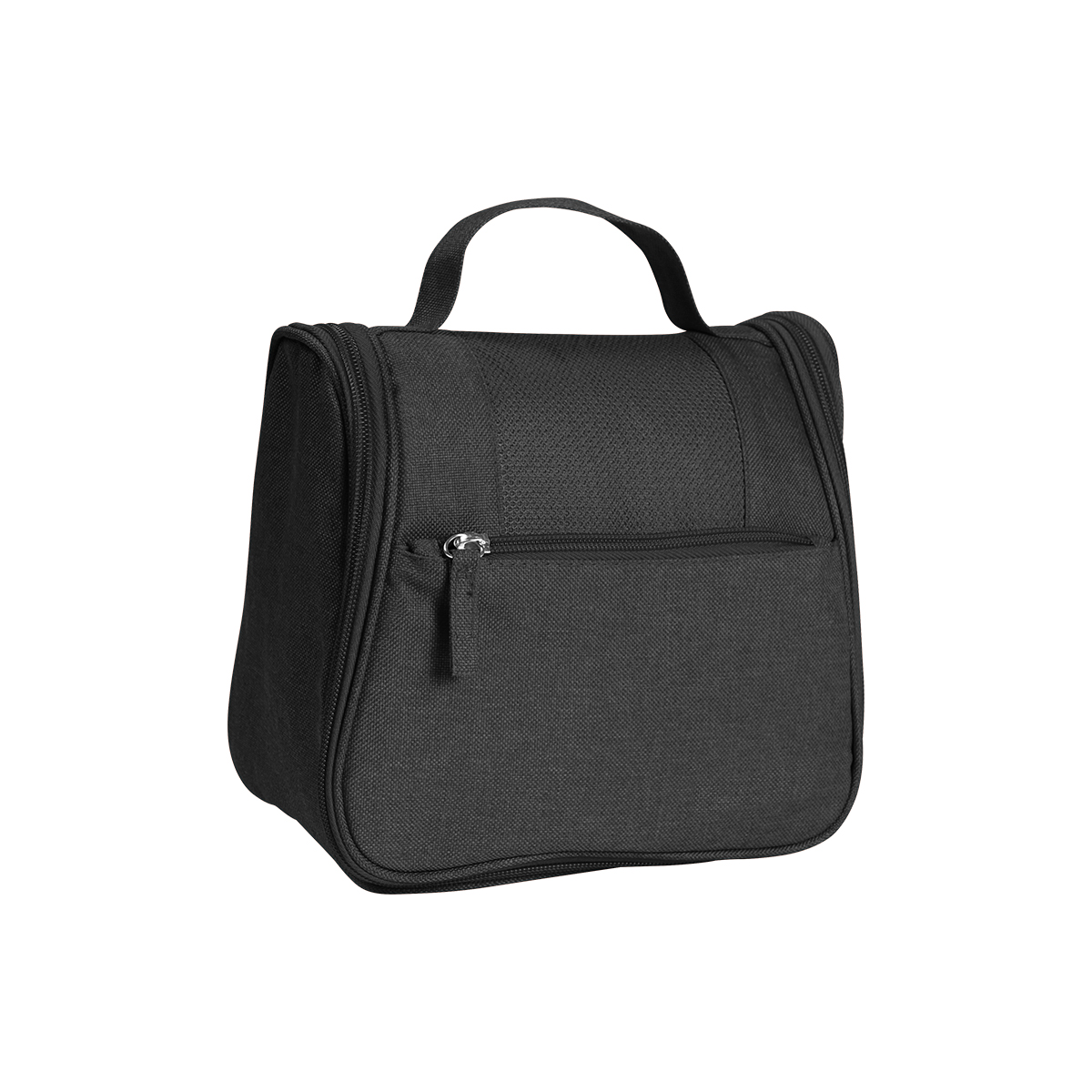 Bolsa multiusos fabricada en poliéster, cuenta con un compartimiento con cierre en la parte frontal, asa en la parte superior, y varios compartimientos de red en la parte interior. Además cuenta con una asa con gancho para poder colgarla cuando esta esté