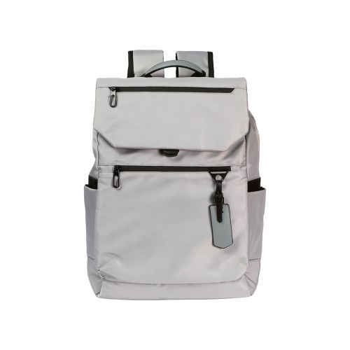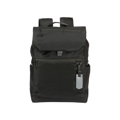 Mochila fabricada en tela poliéster tipo Oxford caracterizada por su resistencia al agua y nylon, con forro interior de poliéster. Cuenta con un compartimento principal, dos compartimentos frontales con cierre, y dos laterales. Tiene dos correas ajustable