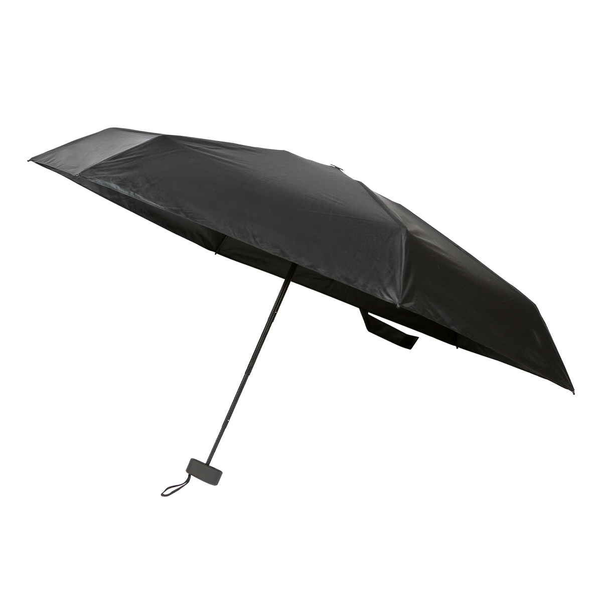Paraguas plegable fabricado con tela de poliéster resistente al agua, diseñada para mantenerte seco incluso durante lluvias intensas. Su estructura interna está compuesta por varillas metálicas ligeras, que brindan estabilidad y soporte sin agregar peso excesivo. El mango es de plástico ergonómico, acompañado de una correa de seguridad que facilita su agarre y transporte.