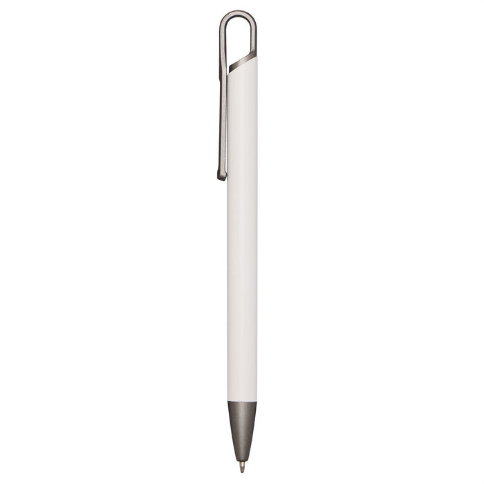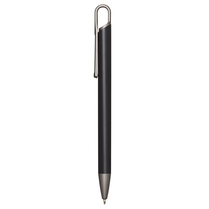 Un clásico renovado.Boligrafo retráctil. Cuerpo metálico en diferentes colores. Acabado mate. Clip pulsador y puntera de color gris gun metal. Medidas: 14 cm. Materiales: Aluminio y Plástico ABS. Peso: 13 g. Tinta: azul.
